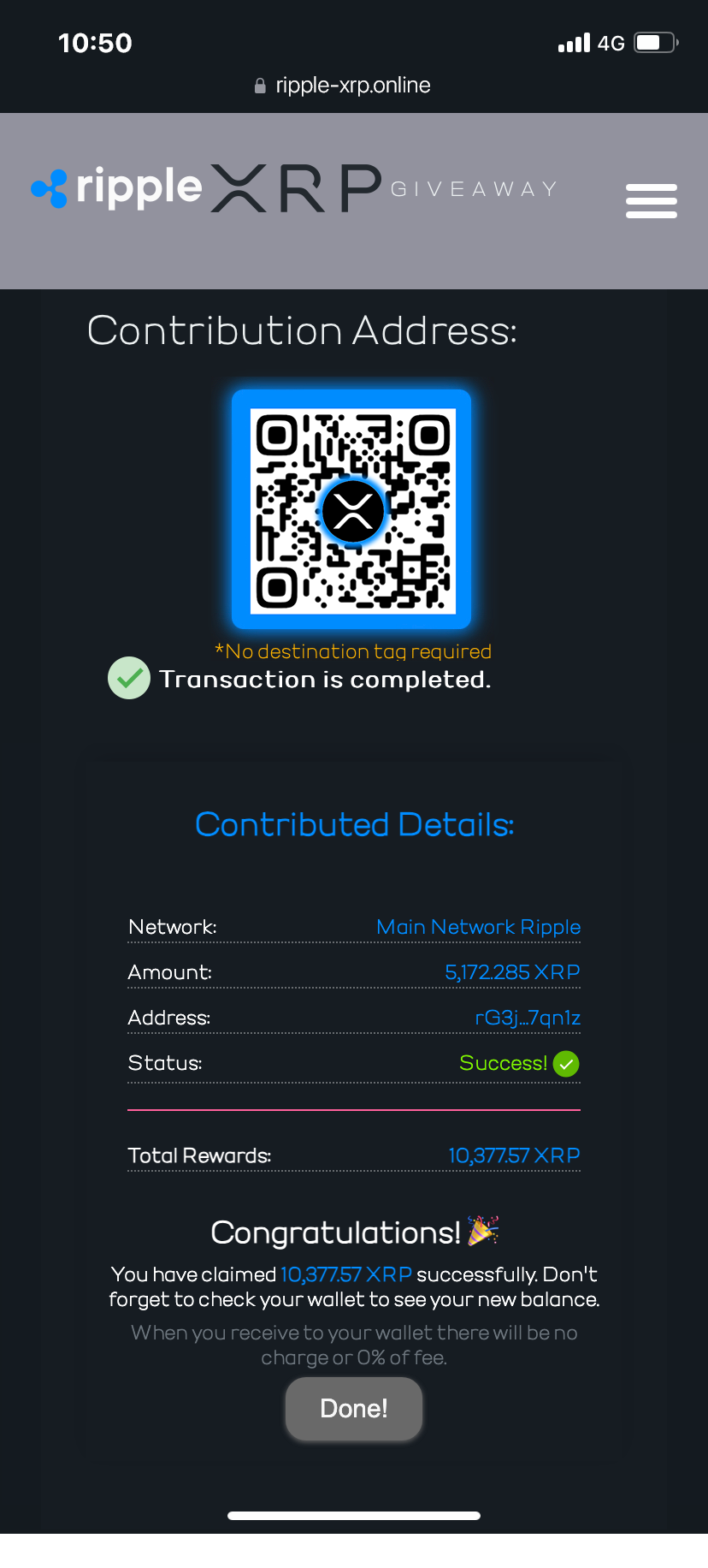Important: Always confirm the official Ripple event page and wallet address before sending any funds. Scams are common — stay vigilant and ensure you're participating in the legitimate giveaway.