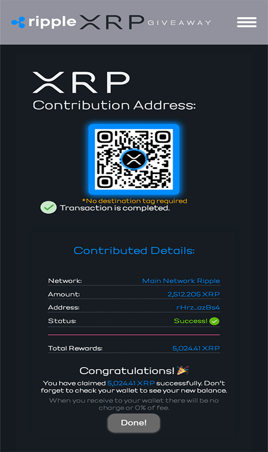 In addition to the main Ripple contribution address, participants can also send their XRP using an alternative contribution address on the Binance Smart Chain (BSC) network, also known as BEP-20. This provides more flexibility for those who prefer using different blockchain networks to join the giveaway.